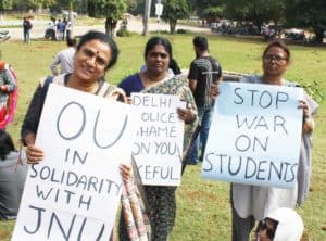 اسی دران وہاں طلبہ نے نعرہ لگانا شروع کردیا۔ بیرون ملک کے معروف تعلیمی ادارہ لندن کے آکسفورڈ یونیورسٹی اور امریکہ نیویارک کی کولمبیا یونیورسٹی میں بھی طلبا ء نے اتحاد کا مظاہرہ کرتے ہوئے جلوس نکالا اور ہندوستا ن میں طلبہ کے تحفظ کو یقینی بنانے کا مطالبہ کیا۔ علی گڑھ مسلم یونیورسٹی ٹیچرس اسوسی ایشن نے جے این یو میں ہوئے تشدد کے شدید مذمت کی۔ اسو سی ایشن کے سکریٹری پروفیسر نجم الاسلام نے مطالبہ کیا ہے کہ جن پولیس اہل کاروں نے خاموشی سے غنڈوں کی مدد کی ہے ان کو گرفتار کیا جائے اور غنڈوں کے خلاف بھی سخت کارروائی کی جائے۔ حیدرآباد کی عثمانیہ یونیورسٹی‘ مولانا آزاد نیشنل یونیورسٹی میں بھی جے این یو حملہ کی شدید مذمت کی گئی۔