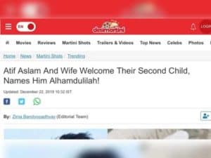 لیکن کچھ نام نہاد افراد اپنی ٹی آر پی بڑھانے کیلئے یا پھر شائد ان کی انگریزی کمزور ہونے کی وجہ سے غلطی کر بیٹھتے ہیں۔ ہندوستان کا دسی مارٹینی ویب سائٹ نے عاطف اسلم نے جو الحمدللہ کہا ہے ان بعض افراد نے عاطف اسلم کے بیٹے کا نام ”الحمدللہ“ سمجھ لیا ہے۔ لیکن سوشل میڈیا پر یہ غلطی سامنے آنے پر دیسی مارٹینی جلد ہی اپنی غلطی کا اعتراف کرلیا اور معافی مانگ لی۔