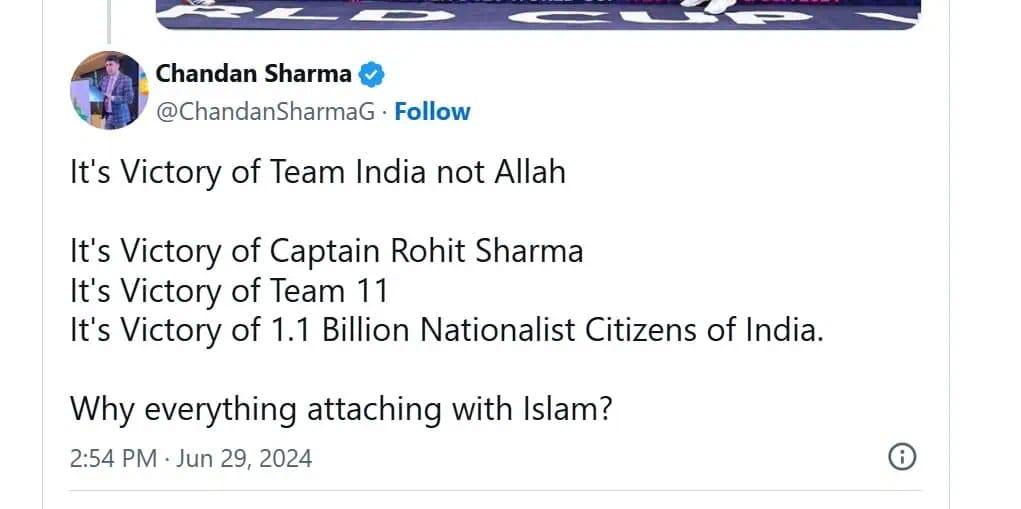 دائیں بازو کے اکاونٹس نے فوری جواب دیا، ’’اگر اللہ کرنا ہوتا تو پاکستان ورلڈ کپ جیتتا، ہندوستان نہیں۔‘‘