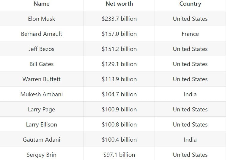 دنیا کے دس ارب پتیوں کی فہرست میں مکیش امبانی او ر گوتم اڈانی دونوں شامل ہیں
