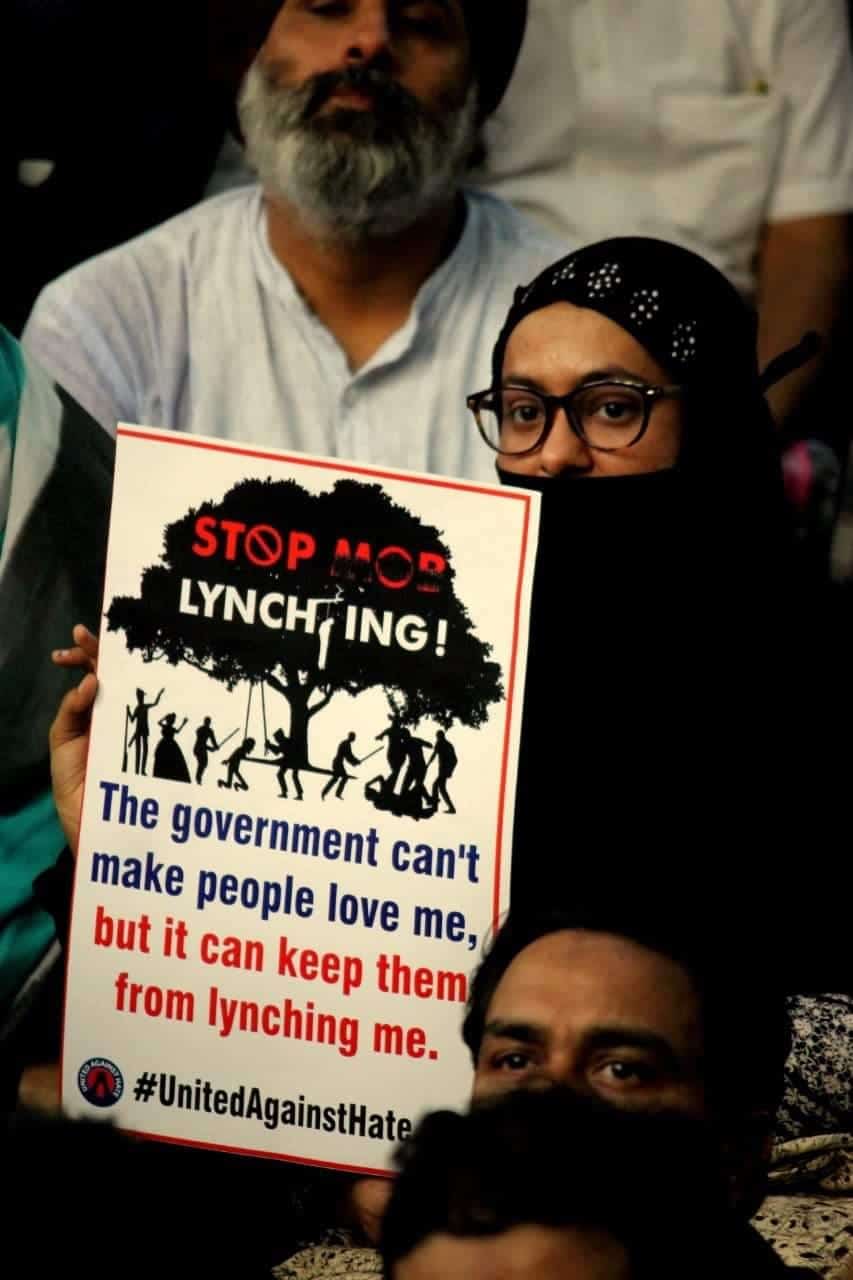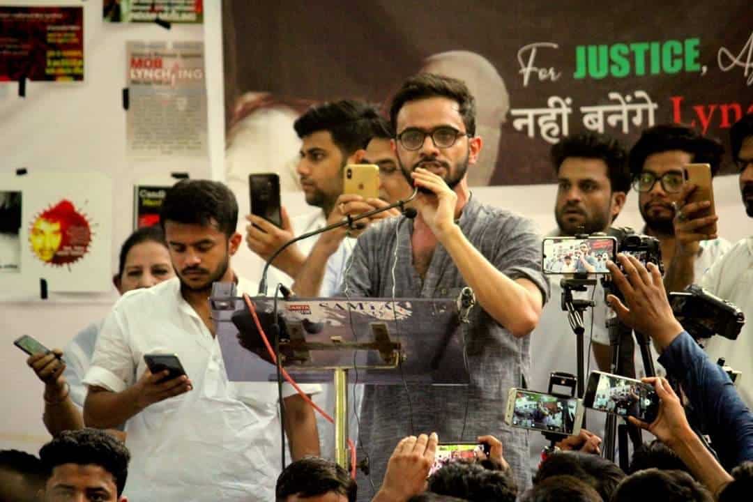 نفرت کے یونائٹیڈ اگیسنسٹ ہیڈ کی جانب سے یہ احتجاج منعقد کیاگیاتھا۔ انقلاب زندہ باد کے نعروں کے بیچ سیاسی کارکن اور جے این یو کے سابق اسٹوڈنٹ لیڈر ڈاکٹر عمر خالد نے کہاکہ ”ملک میں ایک خوف کاماحول بنادیاگیاہے۔