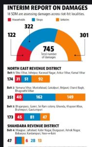 تین نارتھ ایسٹ دہلی ریونیو ضلع اور ایک سہادھارا ریونیو ضلع میں ہے۔ سینئر عہدیداروں نے وضاحت کرتے ہوئے کہاکہ رپورٹ میں ”کافی نقصان“ کو سب سے اوپر رکھ کر حوالہ دیاگیا ہے جو مکمل طور پر تباہ کردی گئی جائیدادوں کے حوالے سے ہے۔