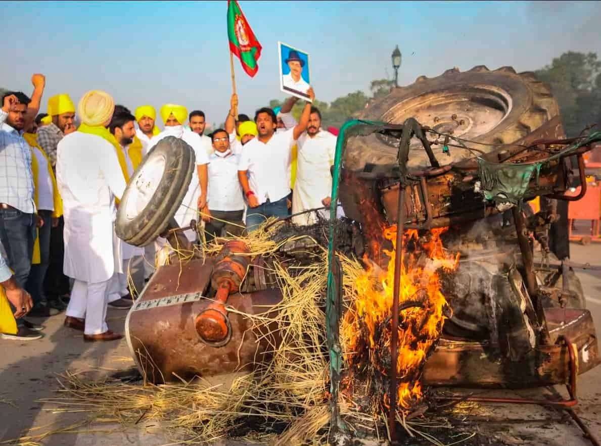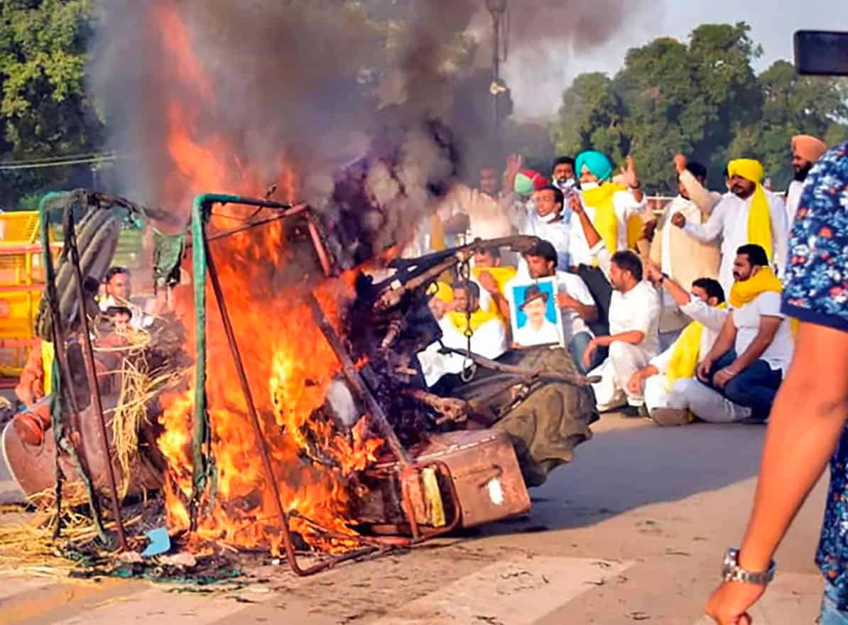 پنجاب یوتھ کانگریس کے کارکنوں نے انڈیا گیٹ کے قریب ٹریکٹر کو نذرآتش کردیا ، 5 افراد کو پولیس نے کیا گرفتار