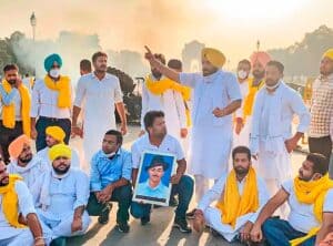 “شہید بھگت سنگھ کی یاد کے اعزاز میں پنجاب یوتھ کانگریس نے انڈیا گیٹ پر ٹریکٹر جلا کر کسانوں کے ساتھ بی جے پی حکومت کے ظلم کے خلاف احتجاج کیا۔ حکومت جاگو! انقلاب زندہ باد۔ ” کے نعرے لگائے۔