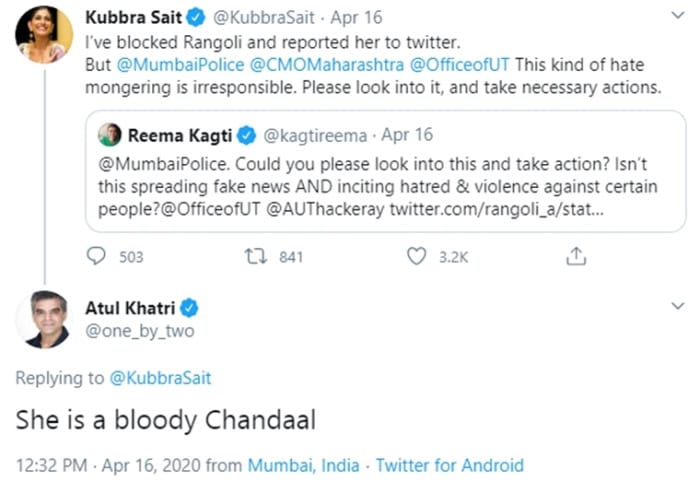رنگولی نے خواہش ظاہر کی کہ ”ملا اور میڈیا کو ایک قطار میں کھڑا ہور گولی ماردینا چاہئے“۔ ستارے جیسے کوبرا سیٹھ‘ ریما کاگاتی اور فرح خان علی ان لوگوں میں شامل ہیں جنھوں نے ٹوئٹ کیاہے۔