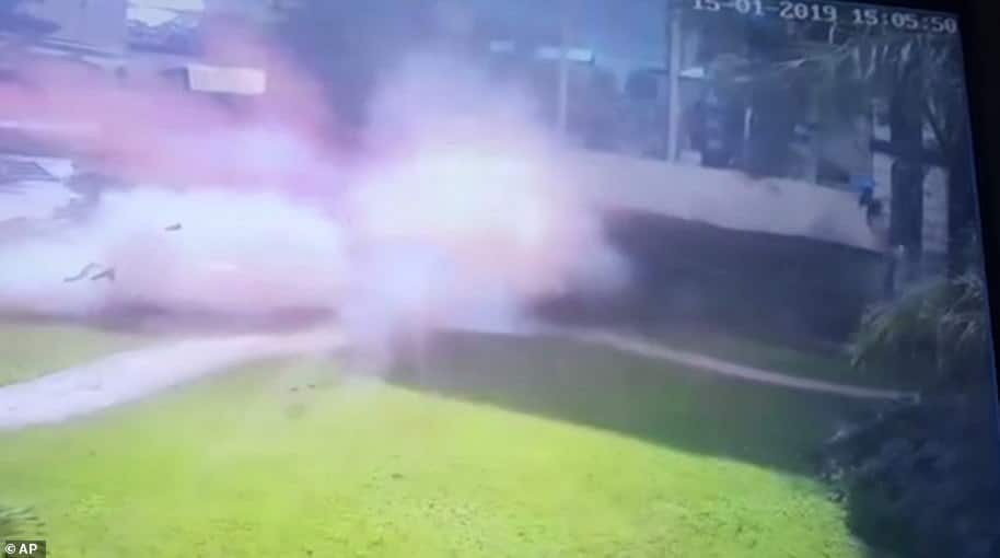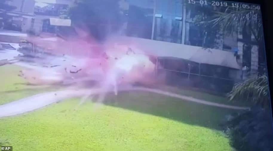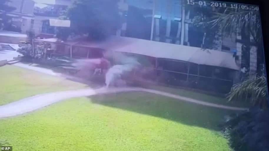میڈیا کوجاری کئے گئے سی سی ٹی وی فوٹیج میں دیکھاگیا ہے کہ حملہ آور خود کو دھماکے سے آڑانے سے قبل اس طرح چہل قدمی کررہا ہے جیسا وہ ہوٹل کی عمارت کے ٹریس پر جارہا ہے۔