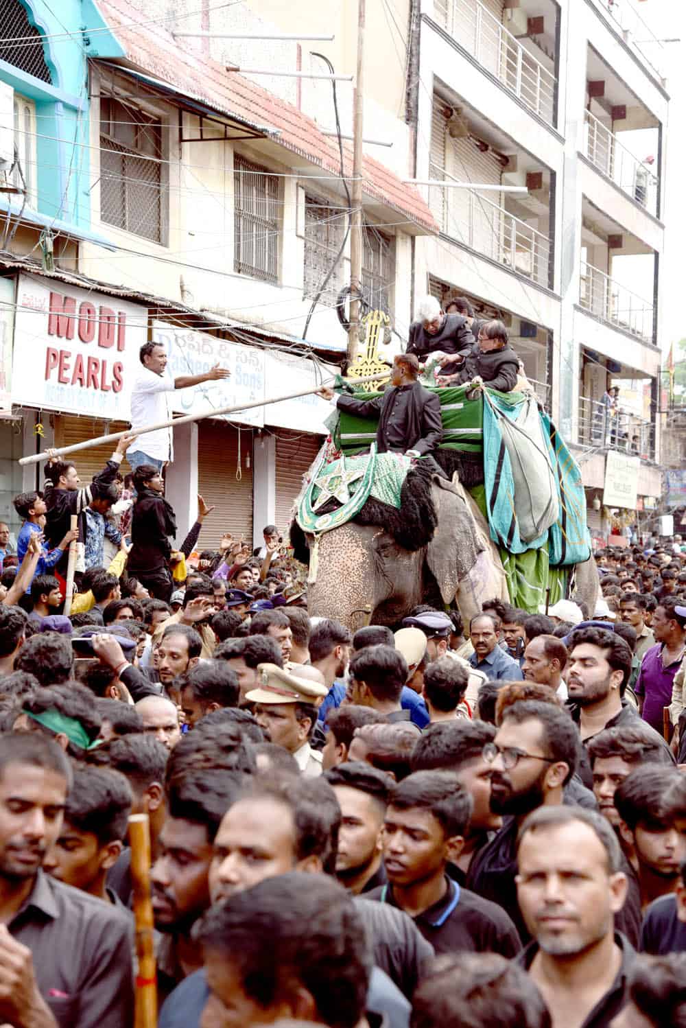 بڑا جلوس دوپہر میں دبیر پورہ پر واقع الاوہ بی بی سے نکلا جس کو ہاتھی پر خوبصورت انداز میں سجایاگیاتھا۔یہ علم 430سے قبل قطب شاہی دور میں بیٹھایاگیاتھا۔