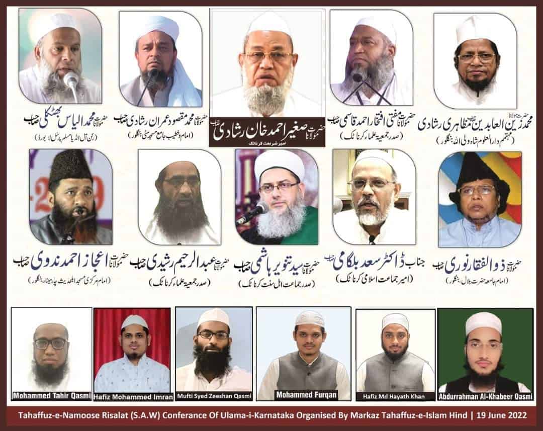 کرناٹک کے مؤقر علماء اور تمام تنظیموں کے ذمہ داران کا گستاخان رسولؐ کے خلاف نمائندہ و احتجاجی پروگرام! مرکز تحفظ اسلام ہند کے ”تحفظ ناموس رسالتؐ کانفرنس“ سے ریاست