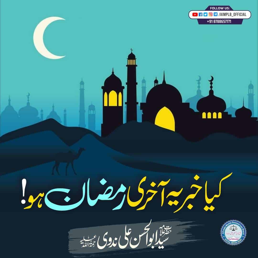 اللہ تعالیٰ ہمیں اور آپ کو توفیق دے کہ اس رمضان کے قدر کریں، اللہ اس کے بعد آپ کو بہت سے رمضان نصیب فرمائے، لیکن آپ کے ذہن میں