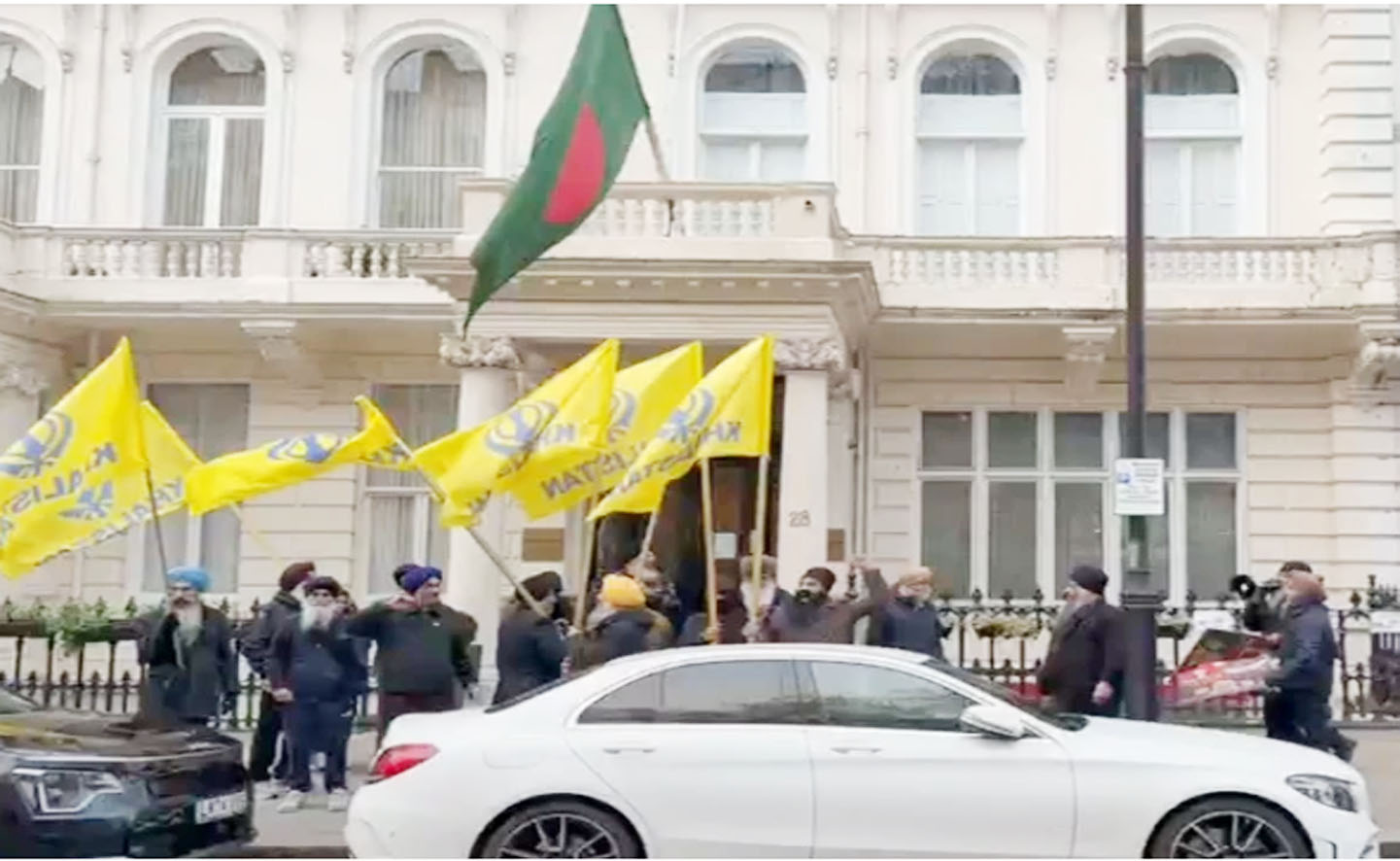 لندن : 28 ڈسمبر ( ایجنسیز )لندن میں واقع بنگلہ دیشی سفارتخانہ کے سامنے اس وقت شدید کشیدگی پیدا ہو گئی جب بھارتی ہندو مظاہرین اور خالصتان کے حامی سکھ