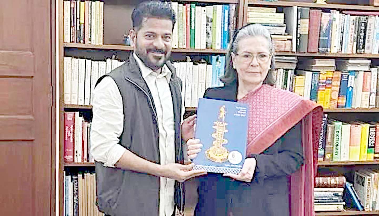 سونیا گاندھی کو ریونت ریڈی نےتلنگانہ رائزنگ 2047 ویژن ڈاکیومنٹ پیش کیا
