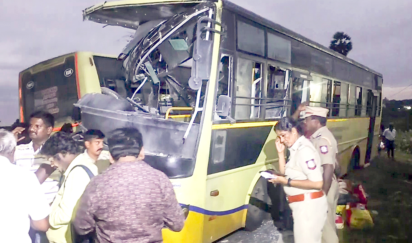 چینائی ۔ 30 نومبر (ایجنسیز) ٹاملناڈو کے ضلع سیواگنگا کے کمّنگوڈی کے قریب اتوار کی شام دو سرکاری بسوں میں خوفناک تصادم کے نتیجہ میں 11 افراد ہلاک اور60 مسافر