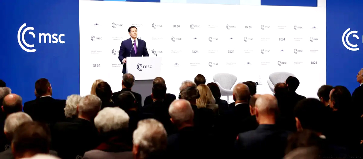 میونخ ۔ 14 فروری (ایجنسیز) امریکی وزیرِ خارجہ مارکو روبیو نے آج ہفتہ کے روز میونخ سیکوریٹی کانفرنس (MSC) سے خطاب کیا، جہاں یورپ اور دنیا بھر کے اعلیٰ سیاسی
