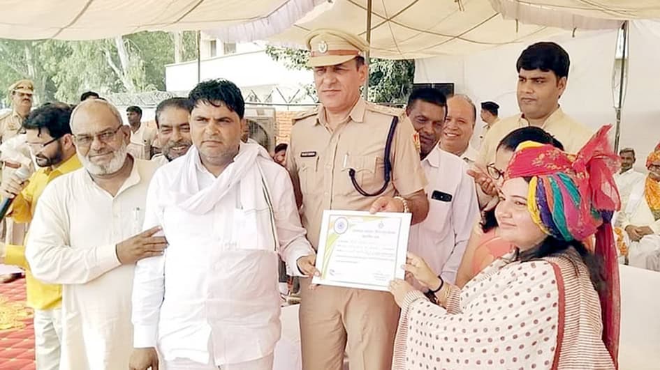 نوح : نگینہ علاقہ میں پڑنے والے بھادس کے سرپنچ کو فیروز پور جھرکہ کے سب ڈویڑنل افسر ڈاکٹر چنار چہل کے ہاتھوں فرقہ وارانہ ہم آہنگی قائم کرنے اور