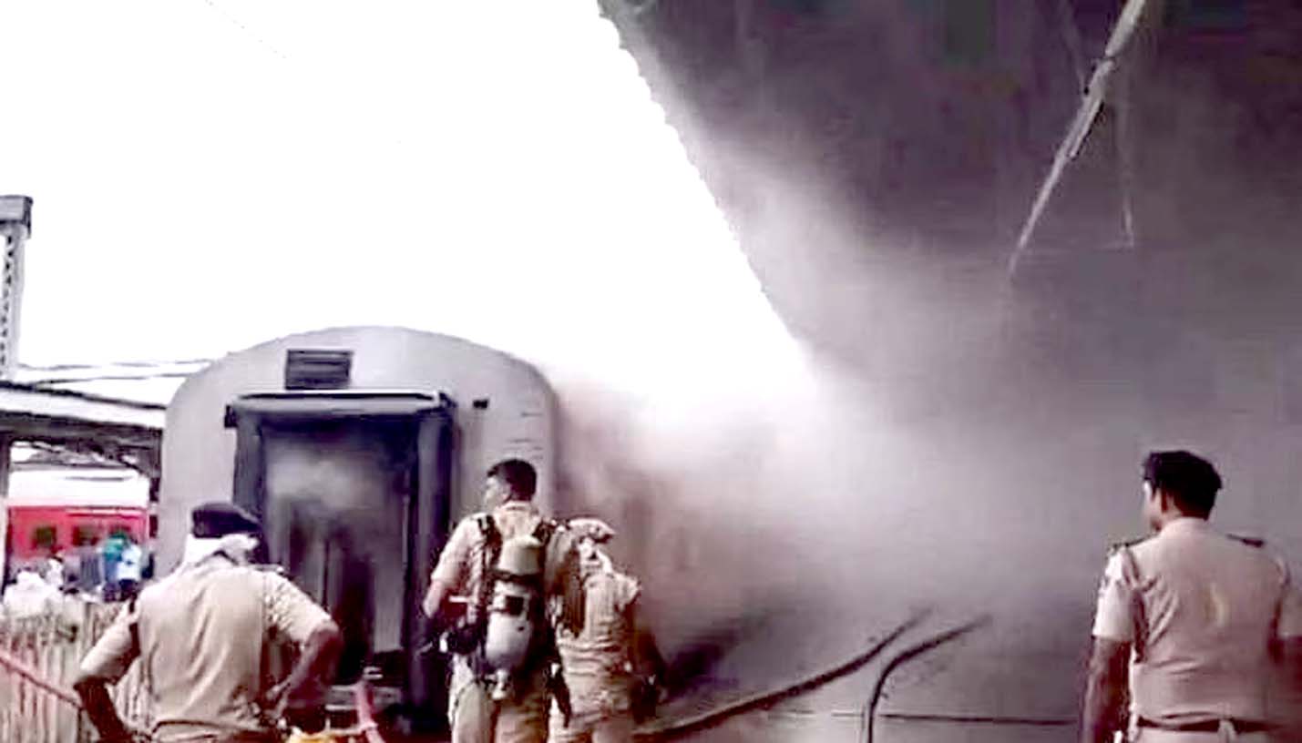 بنگلورو:بنگلورو کے کرانتی ویرا سنگولی راینا (کے ایس آر) ریلوے اسٹیشن پر آج صبح اْدیان ایکسپریس ٹرین میں آگ لگنے سے افرا تفری کا ماحول پیدا ہو گیا۔ فوری طور