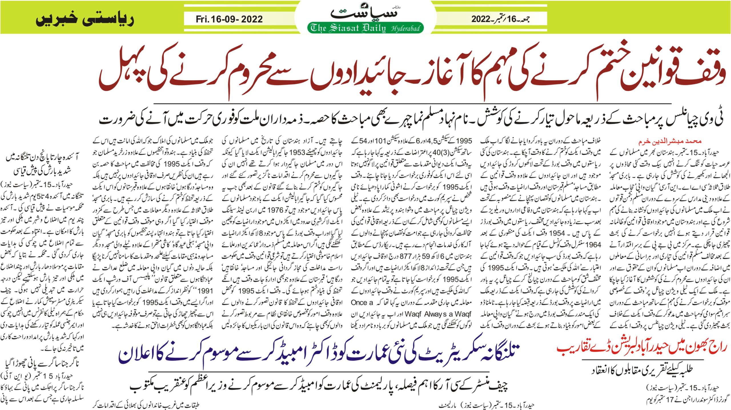 روزنامہ سیاست میں ماحول سازی پر رپورٹ کی اشاعت کے بعد اسد الدین اویسی اور محمد مسیح اللہ خاں کا ردعملحیدرآباد۔21۔ستمبر(سیاست نیوز) روزنامہ سیاست نے 16 ستمبر کے شمارے میں