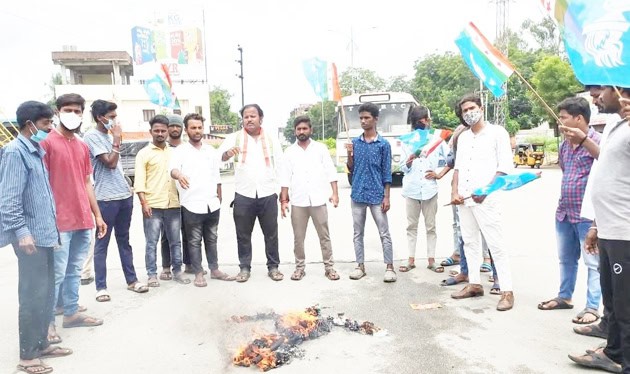 نظام آباد میں چیف منسٹر کا علامتی پتلا نذر آتش