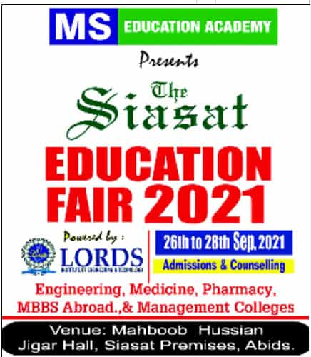 ۔ 26 ستمبر تا 28 ستمبر تین روزہ پروگرام، شرکت کے فائدے:ایم اے حمید روزنامہ سیاست اور ایم ایس ایجوکیشن اکیڈیمی بہ اشتراک لارڈس انسٹی ٹیوٹ آف انجنیئرنگ اینڈ ٹکنالوجی