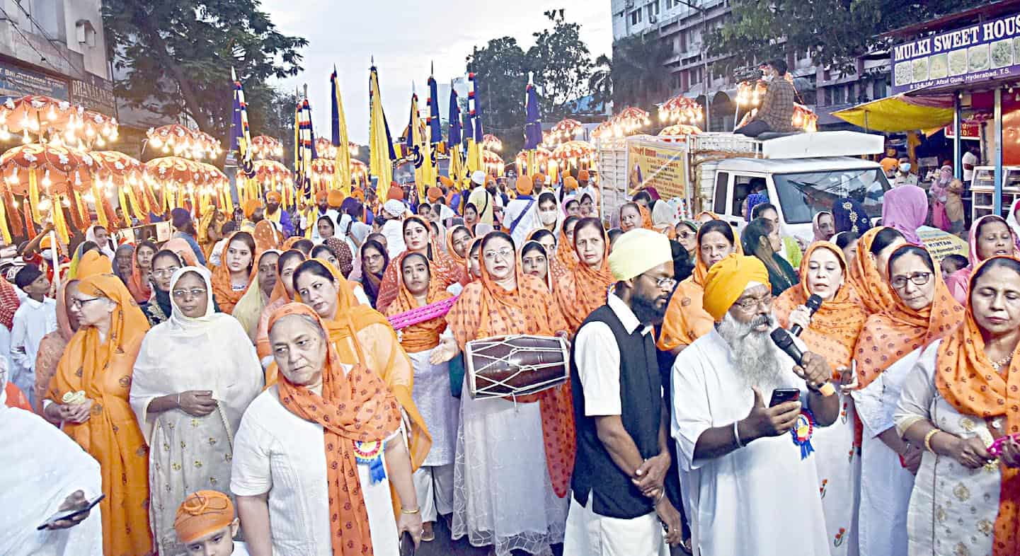 حیدرآباد: سکھ برادری کی جانب سے پہلے سکھ گرو سی گرونانک دیوجی کے 552 ویں یوم پیدائش کے حصہ کے طور پر حیدرآباد میںچہارشنبہ کو جلوس نکالا گیا جو سری