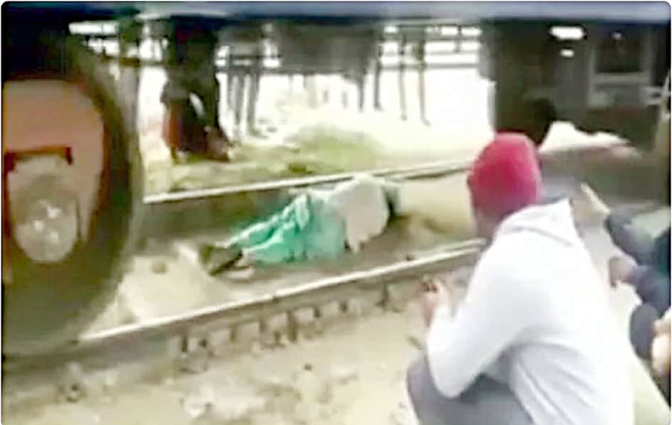 ہریانہ میں خاتون نے پٹریوں کے درمیان رہ کر اپنی جان بچالی ، ویڈیو وائرل