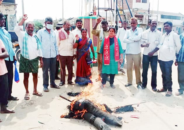 نظام آباد : ڈیزل اور پٹرول کی قیمتوں میں بے حد اضافہ پر آج سی آئی ٹی یو کی جانب سے رنجل منڈل مستقرپر ضلع سکریٹری نورجہاں نے مرکزی حکومت