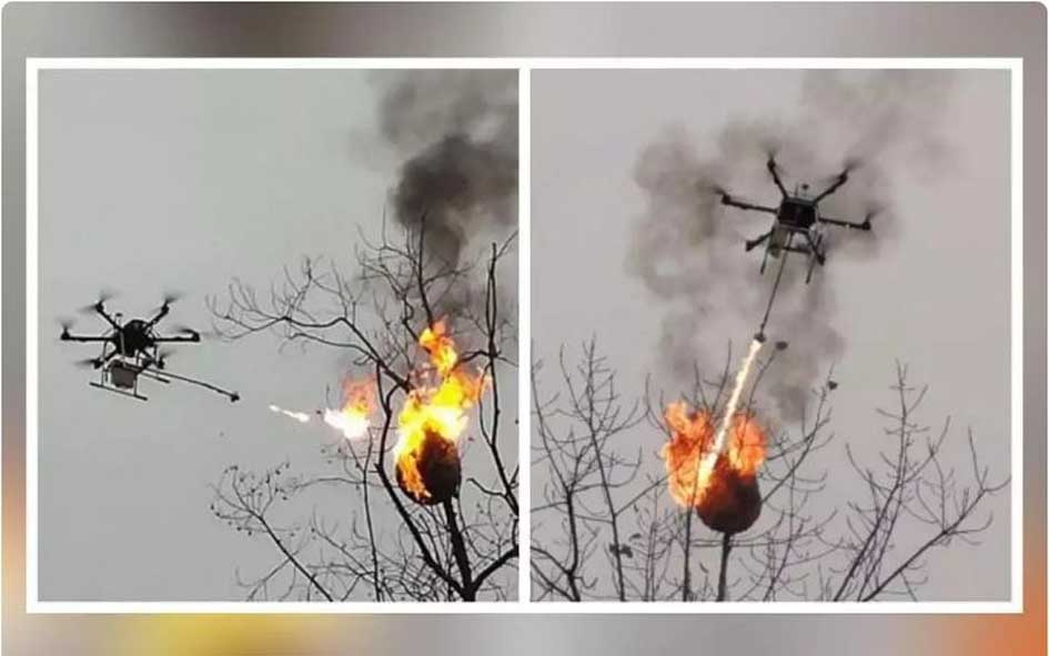 بیجنگ:چینی شہر چونگ چنگ کی کاؤنٹی ڑونگ کے ایک گاؤں میں مکھیوں کے حملوں سے بچنے کے لیے ڈرون تیار کیا گیا جو مکھیوں کے چھتوں کو آگ کے شعلوں