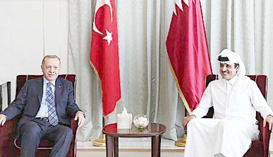 دوحہ : صدر ترکی رجب طیب اردغان نے یہاں دوحہ آمد کے دوسرے دن امیرقطر شیخ تمیم بن حمد الثانی سے پیئر پیالیس میں 3 گھنٹے طویل ملاقات کی اور