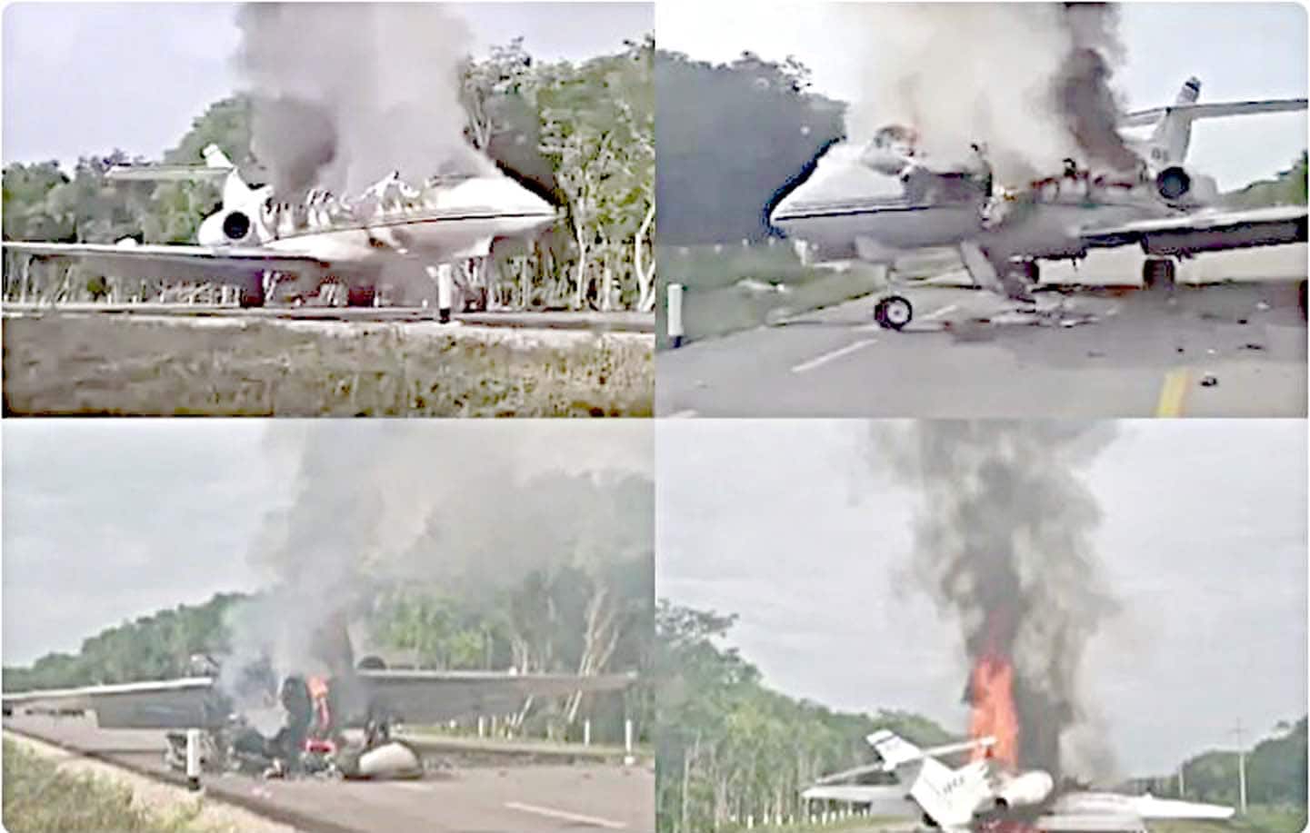 میکسیکو سٹی : ڈرگ اسمگلرس نے ملٹری عہدیداروں کی جانب سے ان کا تعاقب کئے جانے پر اپنے پرائیوٹ جٹ طیارہ کو سڑک پر اتاردیا اور فوری اسے آگ لگادی۔