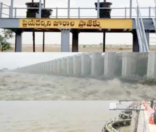 کرشنا ندی میں پانی کا زبردست بہاؤ، 39 گیٹس کھول دیئے گئے گدوال۔ جورالہ پراجیکٹ سے دریائے کرشنا میں پانی کا اخراج جاری ہے۔ مہاراشٹرا اور کرناٹک میں زبردست بارش