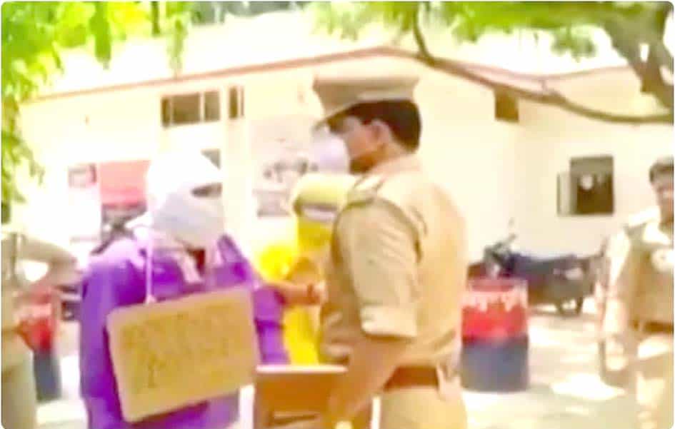 کانپور : وکاس دوبے کے پولیس انکاؤنٹر میں ہلاکت کے بعد اُس کی شریک زندگی پوسٹر میں ملبوس اُس کی بیوی اور ارکان خاندان کے ساتھ چوبے پور پولیس اسٹیشن