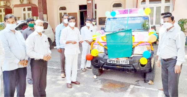 نظام آباد ۔وزیر عمارات و شوارع مسٹر پرشانت ریڈی کے ہاتھوں آج بالکنڈہ حلقہ میں آلانا پروگرام کے تحت موبائیل ویان کا جھنڈی دکھاکر افتتاح کیا ۔ اس موقع پر