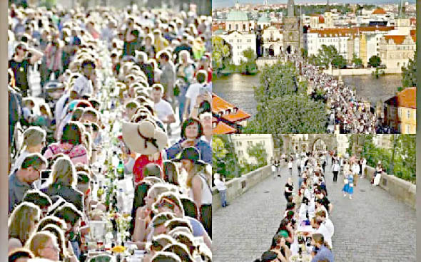 ٭ پراگ کے تاریخی چارلس برج پر منگل کو ہزاروں لوگ جمع ہوئے اور اس اجتماع کا مقصد کوروناوائرس وداعی پارٹی میں شرکت رہا۔ چیک ریپبلک میں کوروناوائرس لاک ڈاؤن