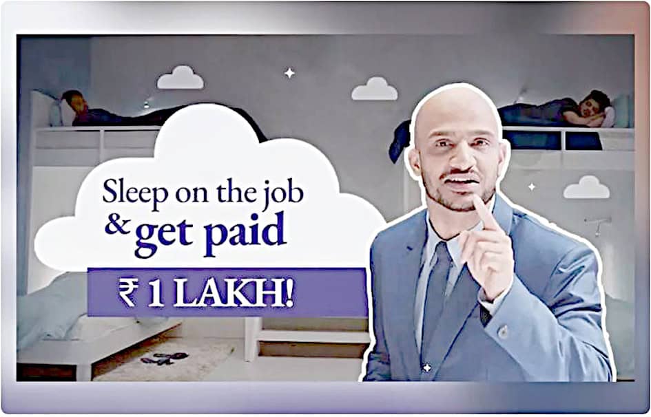 ٭ ویکفٹ ڈاٹ کو( Wakefit.co) ایک ایسی کمپنی ہے جو نوکری پیشہ ملازمین کو سونے کیلئے بطور انعام ایک لاکھ روپئے دینے کا اعلان کیا ہے ۔ کمپنی کے مطابق