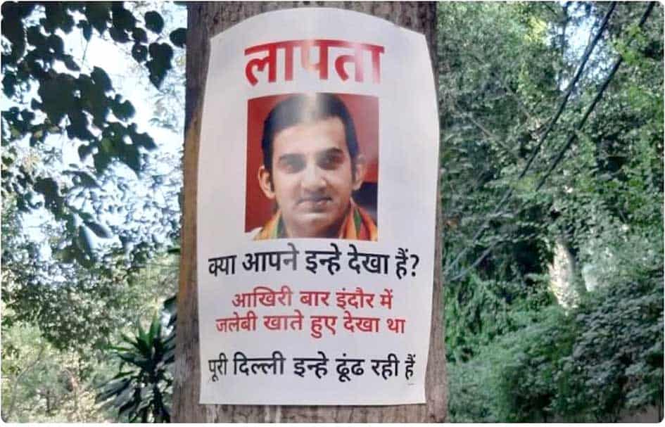 نئی دہلی ۔ /17 نومبر (سیاست ڈاٹ کام) بی جے پی رکن پارلیمنٹ اور سابق کرکٹر گوتم گمبھیر کی گمشدگی کے پوسٹرس دہلی کے مختلف علاقوں میں چسپاں کئے گئے