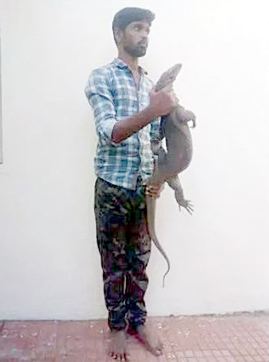 ٭ بنگلور : پولیس آفیسر نے آج ایک جنگلاتی کارکن کی مدد سے ایک ایسے اسمگلر کو گرفتار کرلیا جو زندہ اور بڑے سائز کی چپکلی کے خون کو شراب