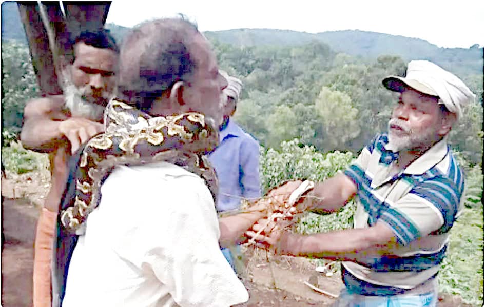 ٭ تھرواننتاپورم : ایک 10 فٹ لمبے اژدھے نے کیرالا کے ایک شخص کی گردن کو اپنی گرفت میں لے لیا تھا۔ اس شخص ہوا چندرن نائر کو اپنی دکان