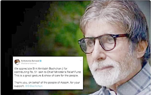 گوہاٹی۔24 جولائی (سیاست ڈاٹ کام) بالی ووڈ کے مشہور اداکار امیتابھ بچن نے آسام کے سیلاب سے متاثرہ لوگوں کے لیے آسام کے چیف منسٹر فنڈ میں 51 لاکھ روپیوں