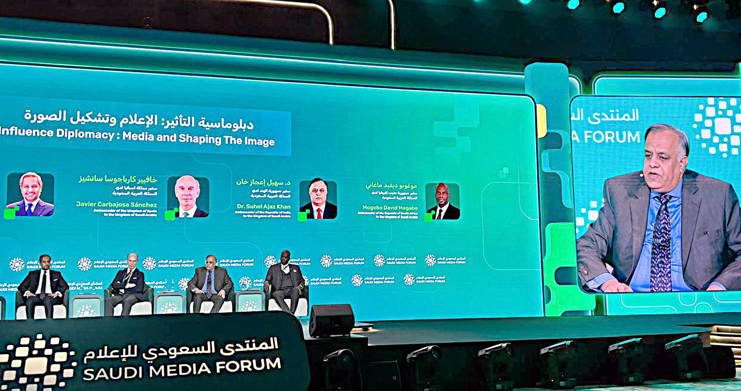 ریاض۔3 فبروری (کے این واصف )ریاض مین جاری سہ روزہ سعودی میڈیا فورم کی جانب سے منعقدہ کانفرنس میں سفیر ہند برائے سعودی عرب ڈاکٹر سہیل اعجاز خان نے میڈیا