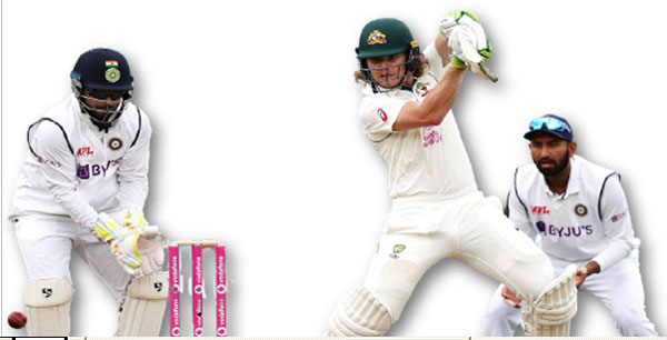 سڈنی ۔مارنس لابوشین کی ناٹ آؤٹ اور کرئیر کا پہلا مقابلہ کھلینے والے وِل پُکوسکی (62) کی شاندار نصف سنچریوں کی بدولت آسٹریلیا نے ہندوستان کے خلاف بارش سے متاثر