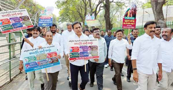6 ضمانتوںکی تکمیل کے مطالبہ کے تحت گن پارک پر احتجاجحیدرآباد ۔20 ۔ مارچ (سیاست نیوز) تلنگانہ قانون ساز اسمبلی میں بجٹ کی پیشکشی کے دوران بی آر ایس ارکان