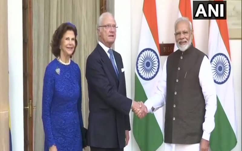 پیر کے روز سویڈش کنگ کارل گوستاف فولکے ہبرٹس اور ملکہ سلویہ رینیٹ سومرالاتھ نے وزیر اعظم نریندر مودی سے حیدرآباد ہاؤس میں ملاقات کی۔ شاہی جوڑے پانچ روزہ ہندوستان