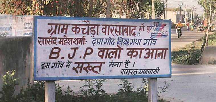 جبکہ بورڈ پچھلے اکٹوبر میں لگایاگیاتھا‘ تاکہ ’حصول اراضی بل پر ناراضگی ‘ کا اظہار کیاجاسکے‘ مقامی لوگوں کا کہنا ہے کہ 11اپریل کے روز یہ رائے دہی کا موضوع