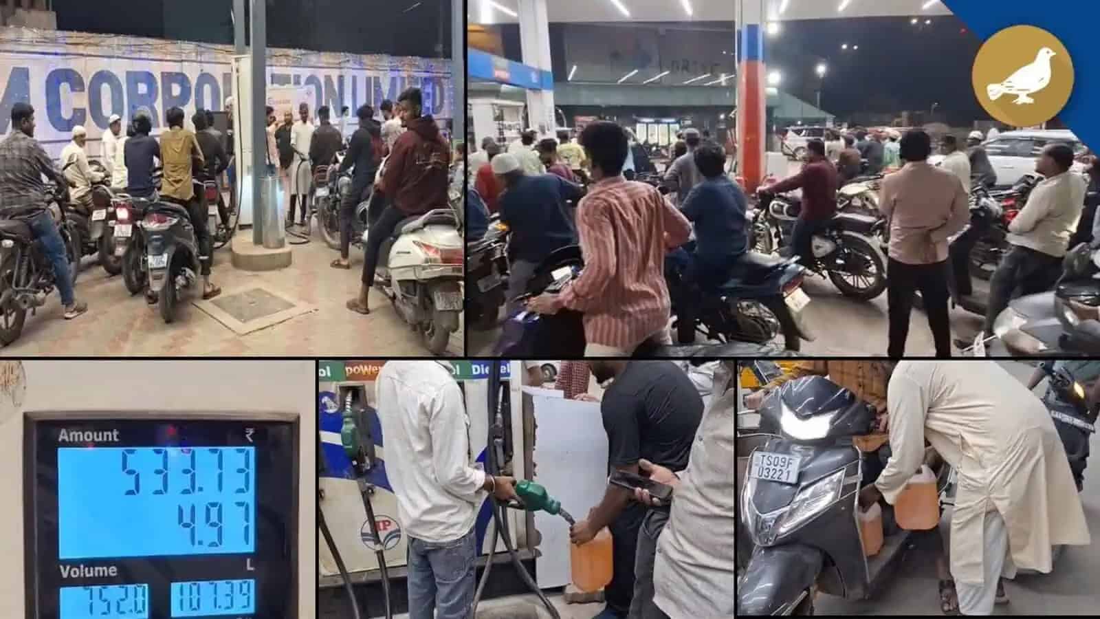حیدرآباد کے پٹرول پمپس پر افواہوں کے درمیان زبردست رش دیکھنے میں آیا