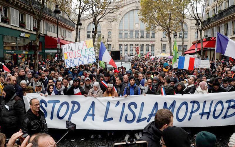 پیرس: فرانس کے شہر پیرس سمیت کئی دیگر شہروں میں بھی ہزاروں افراد نے یوروپ میں مسلمانوں کو اسلاموفوبیا کے تحت ہدف بنائے جانے کے واقعات کے خلاف مظاہرہ کیا۔